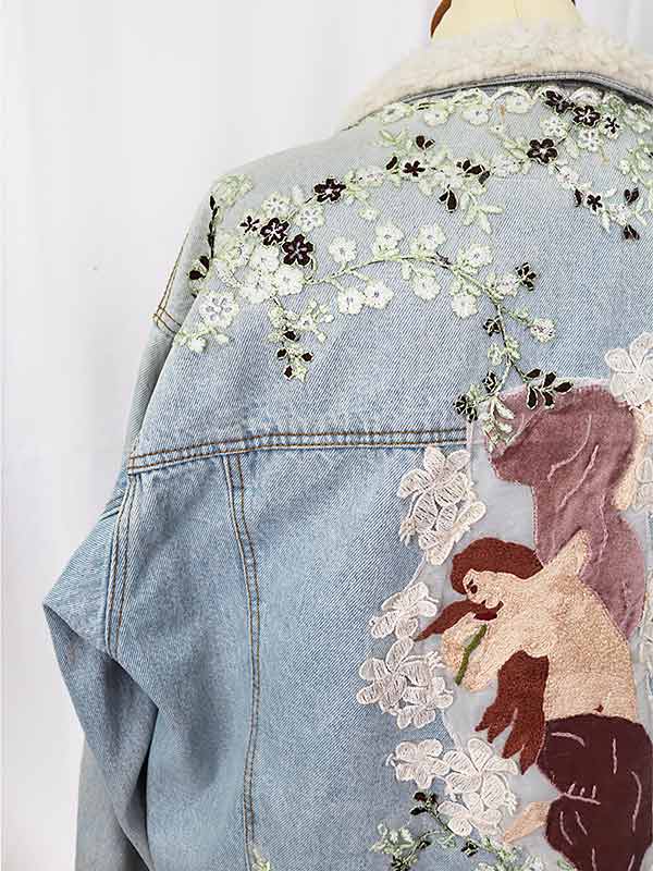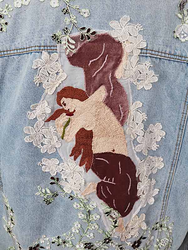 Chaqueta Levi´s Vintage bordada a mano con imagen inspirada el cuadro de William Adolphe Bouguereau «Láurore» (1881).
